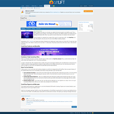 Franktrax is a great network for earning from social media traffic. They make every effort to keep their publishers happy. Good offers, good tracking system, good support, high converting rates and on-time payments. I have been working with Franktrax for over two years now, making a lot of bucks. I love this network.